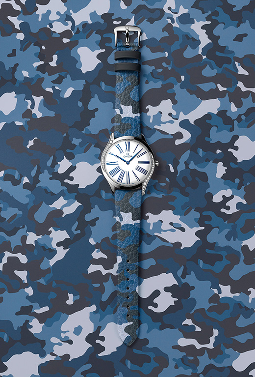 With her contribution to the design of the new camo watch straps, the house’s Trésor watches are beautifully designed for women and in every model diamond paving scintillates around each side of the case and a single diamond is set in the crown. These femininely flat timepieces are outfitted with slim hands that are surrounded by Roman numerals. Kaia Gerber follows in the footsteps of her mother Cindy Crawford who worked alongside Omega’s designers to create a new edition of the Omega Constellation in 1995.