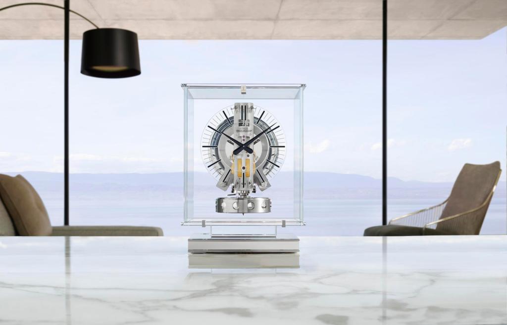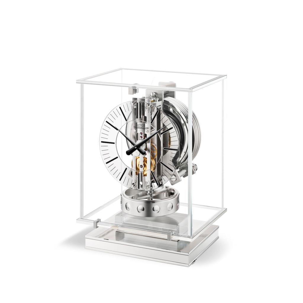 This is a clock that lives on air. It is a simple mechanism invented by the engineer Jean-Léon Reutter in 1928 and brought out by the Swiss watchmaker Jaeger-LeCoultre in the 1930s. The Atmos Transparente clock continues to tell time, constant accurate time. The house has just brought out a new version of this stunning clock with a crystal clear cabinet made of anti-reflective glass From every angle the equilibrium of the clock and its movement, the Jaeger-LeCoultre Calibre 563, is visible. The clock’s dial enjoys an Art Deco style and minimalist hors markers and hands.The Atmos Transparente clock is outfitted with a new glass dial that sets off its 12 deep black hour markers.Through just a single degree of variation in the room and the Atmos can capture enough power to run for two entire days. The pendulum clock takes in the energy it needs to run from temperature and atmospheric pressure changes in its environment. The clock, whose movement is virtually perpetual, brings together mechanical expertise and aesthetic precision. The Jaeger-LeCoultre Calibre 563 movement is mechanical and virtually perpetual. It contains 217 parts and is manufactured and assembled by hand. The Atmos pendulum clocks are often given to visiting heads of state by the Swiss government.