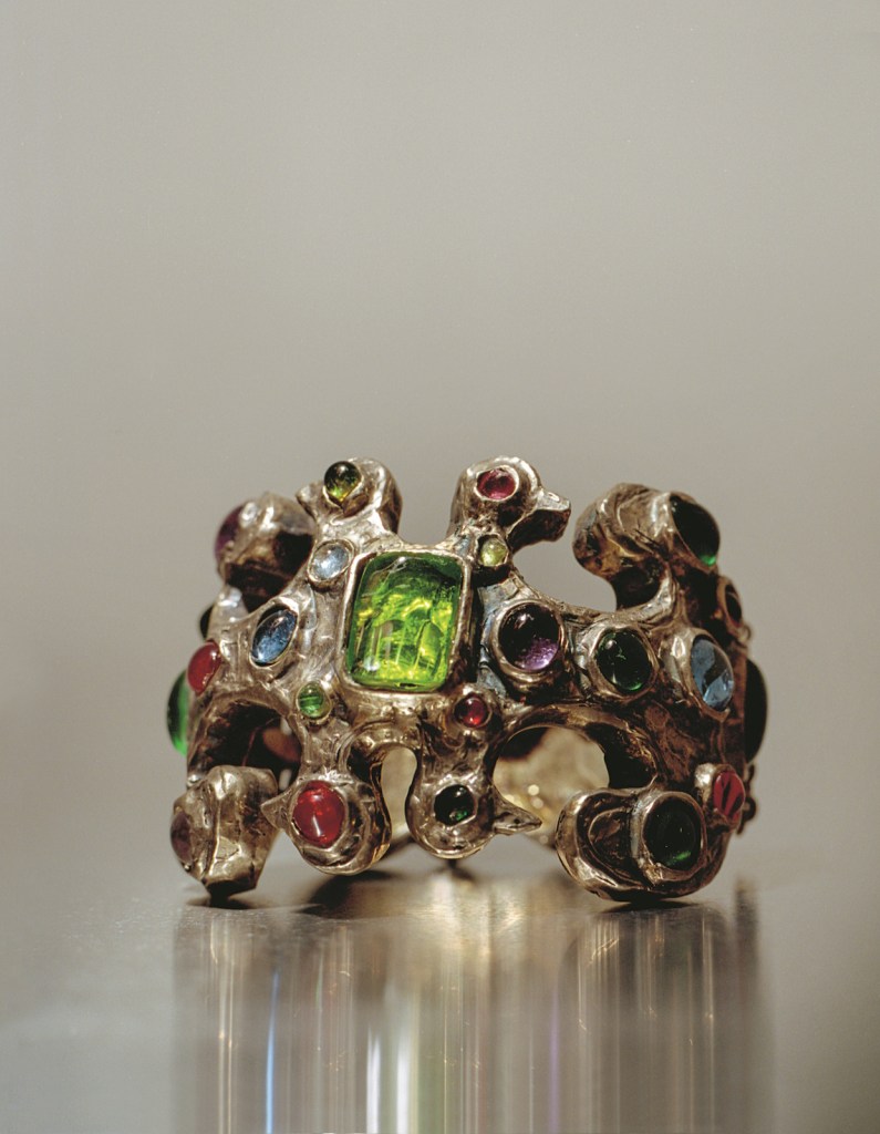 She was an advocate of costume jewelry, however she also created fine jewelry and notably a collection composed solely of diamonds mounted on platinum in 1932. A collection that she would exhibit in her private mansion on 29 rue du Faubourg Saint-Honoré. These included the comets, stars, feathers, fringes and ribbons to be worn into a décolleté, on the wrist or on the nape of the neck. Her costume jewelry was prodigious and some of the pieces combined the real thing with fakes and Chanel felt you could put a piece of jewelry wherever you wanted to like a brooch on a sleeve or the hip for instance. Historical and exotic themes were among the favorites supplemented by floral decorations.