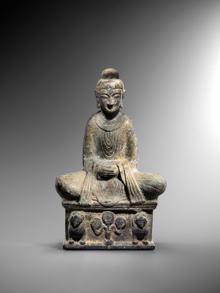 Paris, France —A terra cotta monkey enameled in shades of blue and green emerges during the Tang dynasty circa the 8th century. An exceptional bronze Buddha dating from the end of the 4th to the beginning of the 5th century is exceptional and rare for it is pictured in the sitting meditation position. A striking ritual vessel in bronze for storing wine from the Yinxu period of the Shang Dynasty which ruled from the 14th to the 11th century BC is also tantalizingly on display. These are just some of the exceptional pieces being exhibited at the Christian Deydier Gallery in Paris until October 31st. The show, entitled Chinese Masterpieces from a French Collection, brings together a majestic ensemble of 21 pieces that have never been displayed together before.