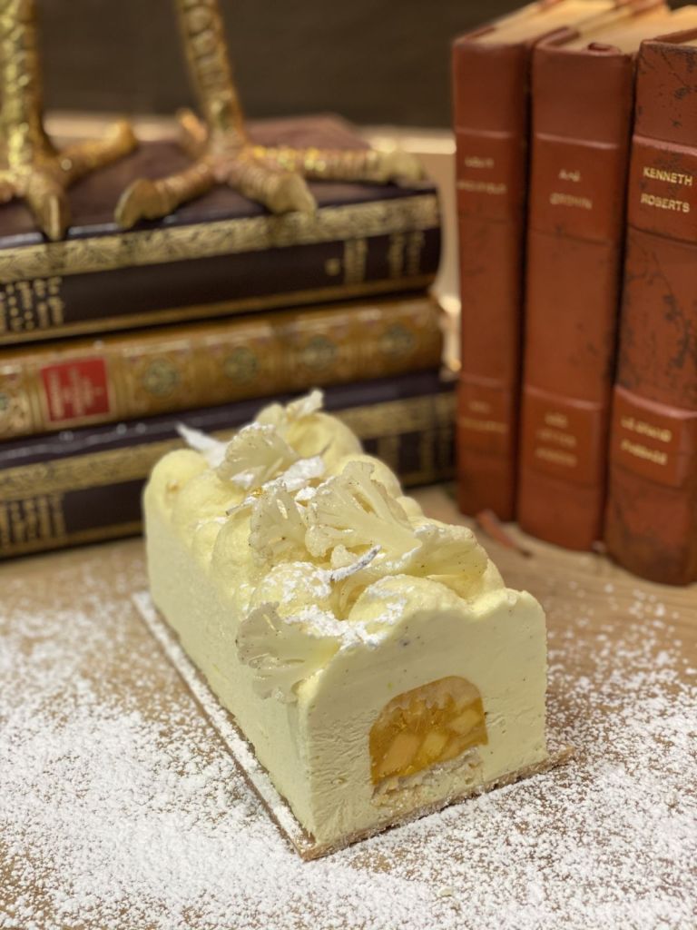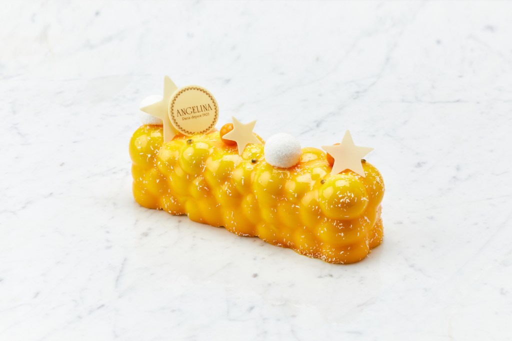The Polar Star Bûche imagined by the Michelin starred chef David Gallienne. This is an iced cake revolving around the savors of two teas from the Maison Theodor, mango and citrus fruits. Photo ©Marie Gallienne. Handout via The Gourmet Gazette