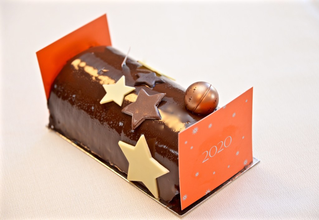 The very first bûche from the house of Paul Bocuse. Dubbed Nuances, brought out in a limited edition, it was imagined as a tribute to Paul Bocuse and with its savors of hazel nut from the Piedmont, exotic fruits and a coconut mousse underscores the legendary chef’s love of traveling. Photo ©Fred Durante Courtesy Bocuse. Handout via The Gourmet Gazette