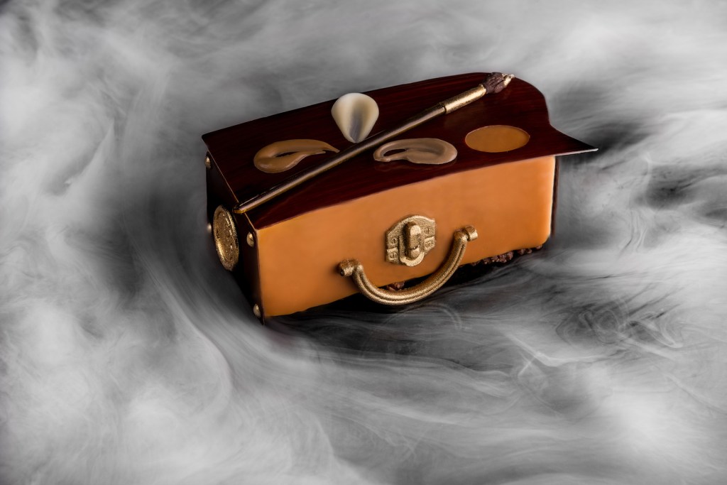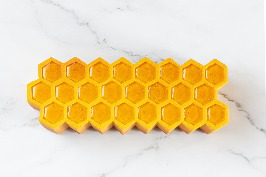 The Honey Ray Bûche by Pascal Hainigue, the pastry chef at the Burgundy Hotel in Paris who pays tribute here to the meticulous work of bees. Honey, creamy caramel, lemon cake and gourmet coffee savors are the hallmarks of the cake. Photo ©Julie Limont Courtesy The Burgundy. Handout via The Gourmet Gazette