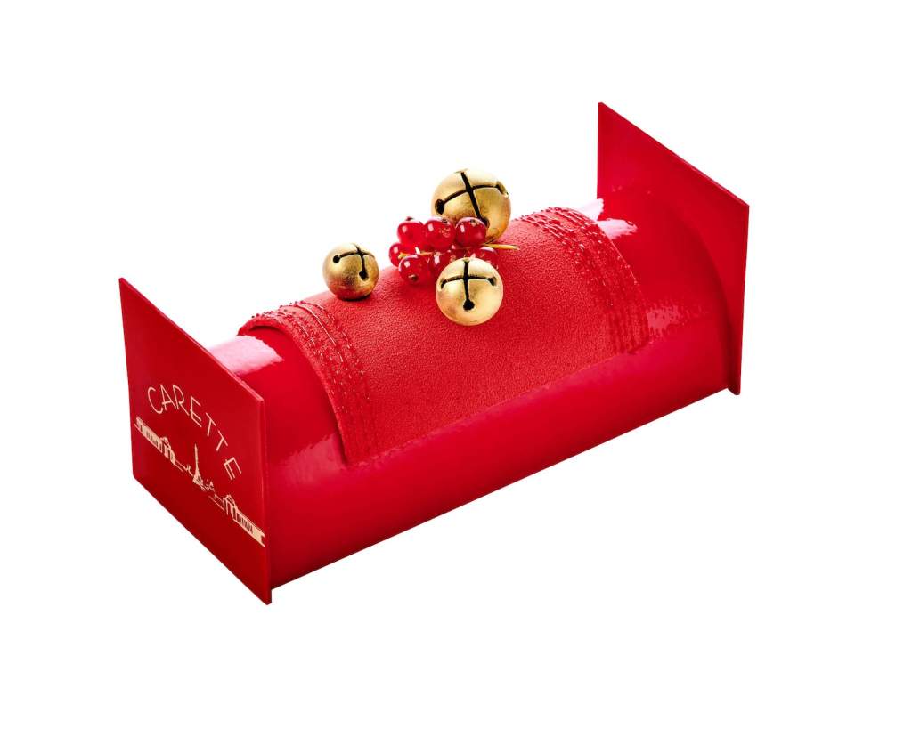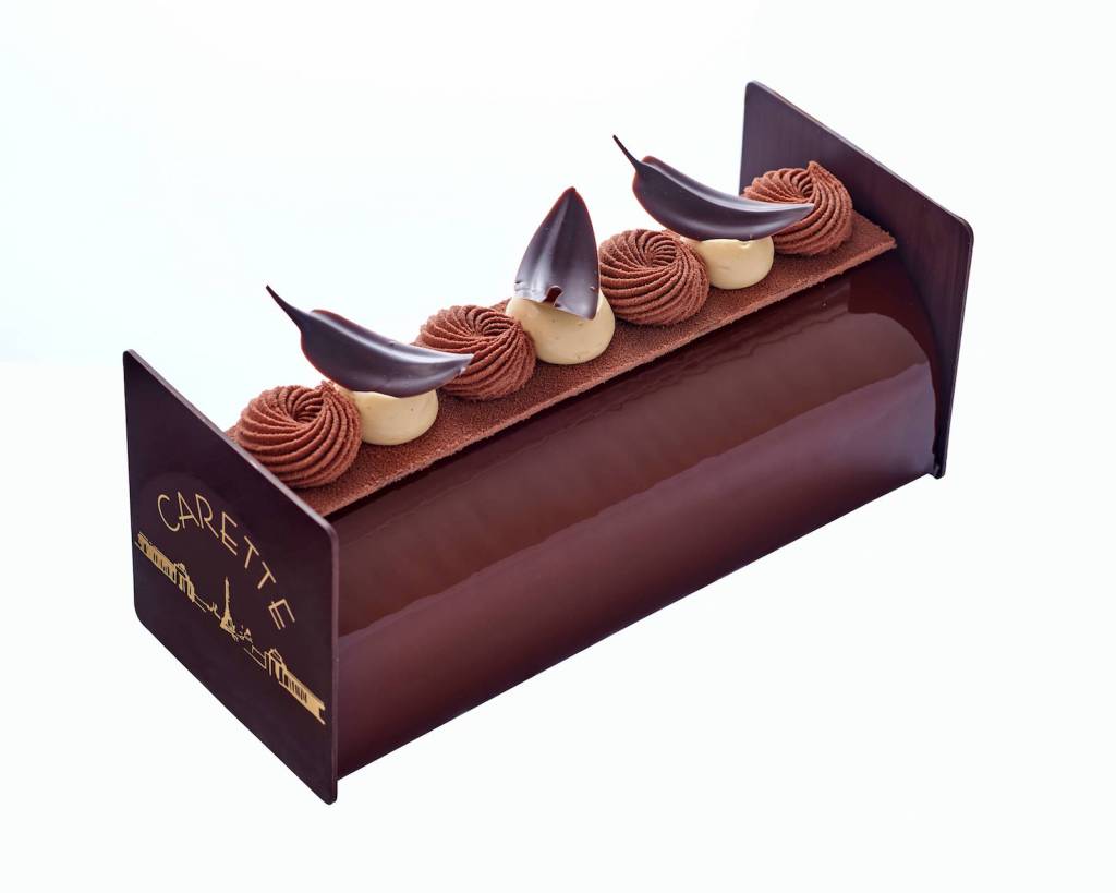 From the house of Carette the Bûche Camélia with chocolate mousse, caramel, salty caramel, cake and ladyfingers. Photo ©Courtesy Carette. Handout via The Gourmet Gazette