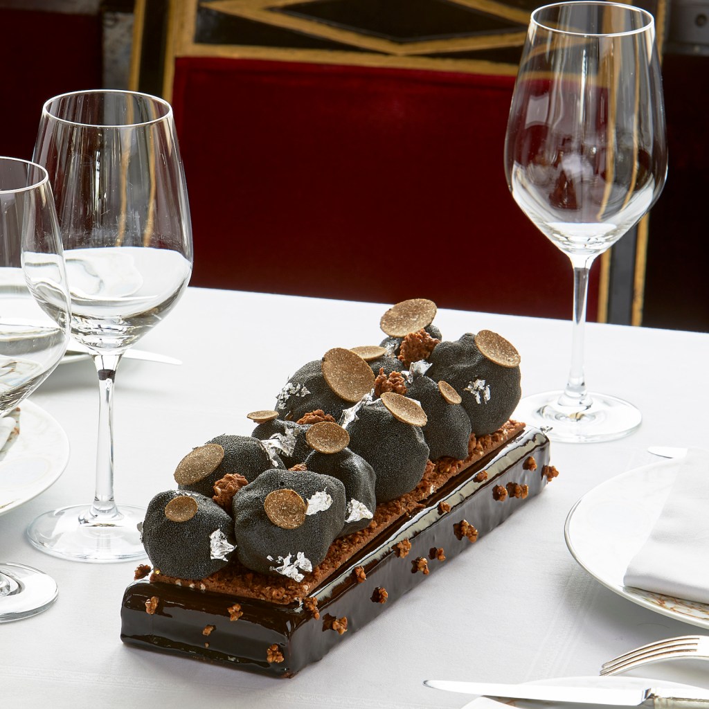 From the Grand Véfour restaurant in Paris and its celebrated chef Guy Martin the Dark Chocolate Truffle Bûche. Photo ©Courtesy Guy Martin. Handout via The Gourmet Gazette