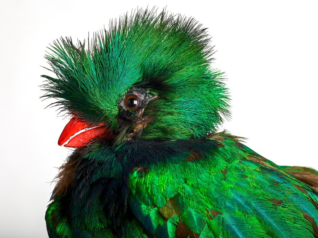 A resplendent emerald green quetzal, a nest of Scops owls, a kakapo also known as the parrot owl are among the birds on display. The quetzals have striking colors and are regarded as one of the spirit guides of the Maya. Unfortunately they are hunted for the beauty of their feathers and their habitat is in decline. The resplendent quetzal, Pharomachrus mocinno, is listed by the International Union for the Conservation of Nature as Near Threatened on the organizations Red List. The Scops owl is a nocturnal bird, hunting by the cover of night. These owls, Otus scops, are found in Europe, northern Africa, Asia Minor and central Asia. It is currently not considered to be endangered. Unique among parrots, the kakapo hails from New Zealand. It is regarded as unique for it is flightless, nocturnal (kakapo means parrot of the dark in the Maori language) and it is the heaviest parrot in existence. This unique bird is listed as critically endangered by the International Union for the Conservation of Nature.