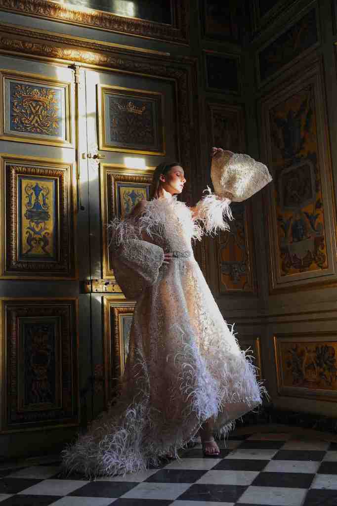 Spring Summer 2021 Haute Couture collection entitled Birds of Love from Ziad Nakad in the majestic setting of the Château of Vaux-le-Vicomte Photo Greg Alexander ©Méphistophélès Productions. Handout via The Gourmet Gazette
