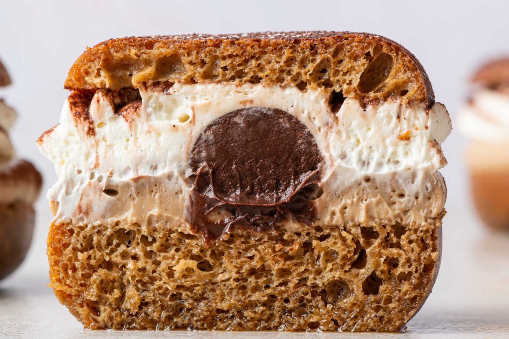 This version is rooted in the taste of coffee and mascarpone Chantilly cream. The cake part is soaked with coffee syrup (replacing the typical rum or kirsch) and its creamy filling is an unctuous affair of arabica coffee cream and mascarpone Chantilly. And in the middle of it all a dollop of creamy cocoa cream. Traditionally the beloved baba was a sponge cake to which raisins were added and once baked it was copiously flavored with a rum syrup. Its origins can be traced back to the gourmet tastes of the Polish King Stanislaw Leszczyński who lived in exile in the French province of Lorraine and who found that the local kouglof cake was too dry. He was said to be a fan of the Arabian Nights and baptized his creation after his favorite character, Ali Baba. The Parisian pastry house of Stohrer, whose owner frequented the Polish court and which is still in existence today, would perfect the recipe making it one of the house’s specialties in its shop on the rue Montorgueil in Paris.