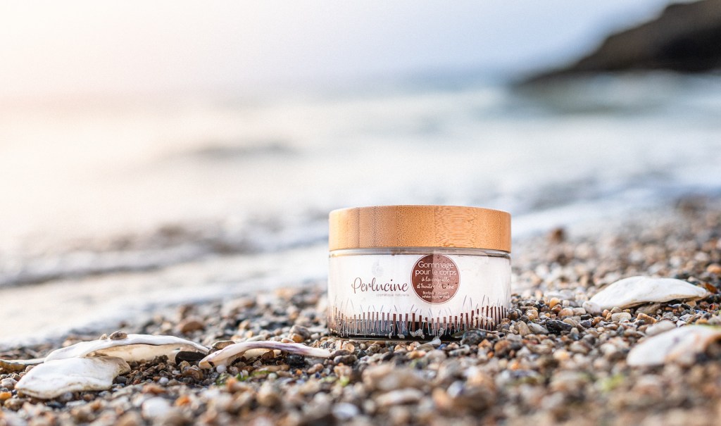 Perlucine body scrub surrounded by the local white wild oysters on the beach in Brittany. Photo courtesy Perlucine. Handout via The Gourmet Gazette