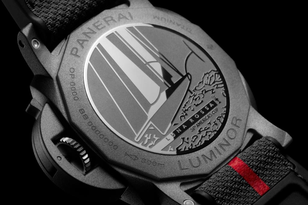 The back of the Panerai Luminor Luna Rossa, a 49mm GMT brought out in a limited edition of 20 pieces. Photo ©Courtesy Panerai. Handout via The Gourmet Gazette