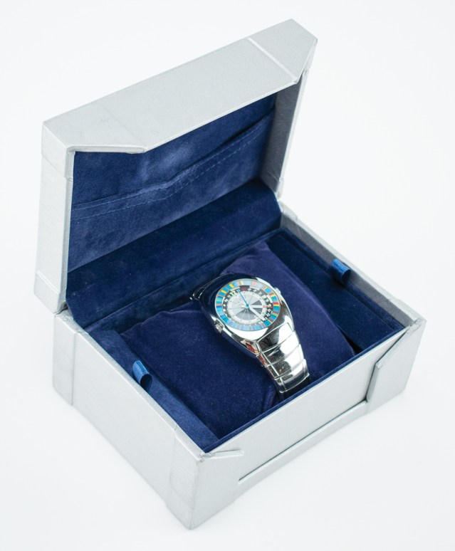 The Cosmonavigator watch was produced by the house of Vostok specifically for use in space onboard spacecraft in low Earth orbit and is regarded as a true space watch. It was designed by a cosmonaut, Vladimir A. Dzhanibekov, and its unusual color-coded 24-hour dial is designed to indicate the point on Earth that the space craft is flying over at the time. The blue segments represent oceans and seas, red is Europe and Russia, black is Africa, yellow is Asia, purple is North America, brown is South America, and green is Australia. Also included in the auction is NASA Flight Director Neil B. Hutchinson’s Rolex GMT-Master wristwatch, worn daily throughout his career in Mission Control and from the vantage point of Hutchinson’s wrist, this iconic timepiece witnessed the key events from the age of Apollo through the early Space Shuttle missions.