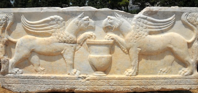 In Antiquity images of the griffin appeared in the Near East, Anatolia and Cyrpus, explains the specialist in Near Eastern and Egyptian relations in Antiquity Hélène Bouillon, a curator at the Louvre-Lens museum. For the Greeks, she explains, griffins were the guardians of the treasures of Apollo and Dionysus while at the same time, the first millennium before Christ, its effigy decorated the palaces of ancient Persia.