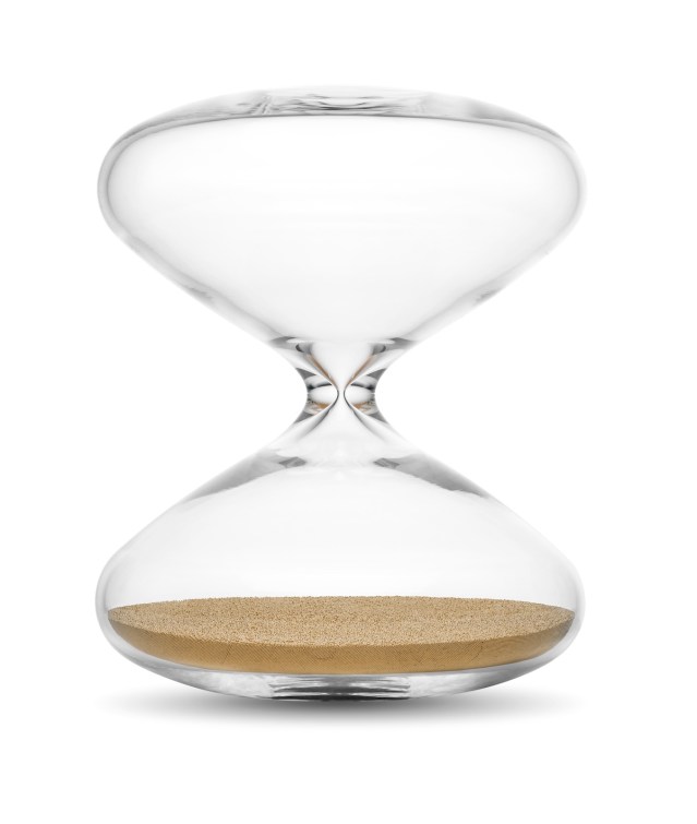 The Hourglass which opens the show symbolizing that ultimate luxury, time. The Hourglass, Marc Newson, 2015, Suisse, Verre borosilicate, nanobilles en acier inoxydable plaquées or © Philippe Joner. Handout via The Gourmet Gazette