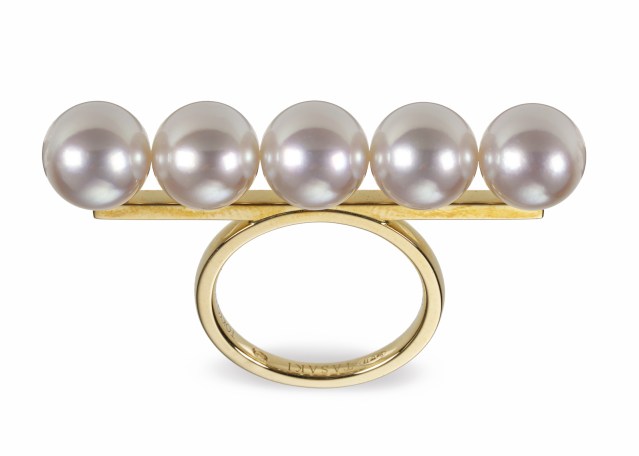 Balancing act pearl ring from the house of Tasaki. Bague Balance — Tasaki, 2017 © MAD, Paris / Christophe Dellière. Handout via The Gourmet Gazette