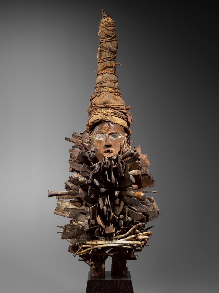 Fetich of the Vili known as the Nkissi Nkonde in wood, metal, glass, fabric and kaolin, circa late 19th-early 20th century. (Democratic Republic of the Congo). Private Collection, Paris. Photo Courtesy Galerie Bernard Dulon. Handout via The Gourmet Gazette