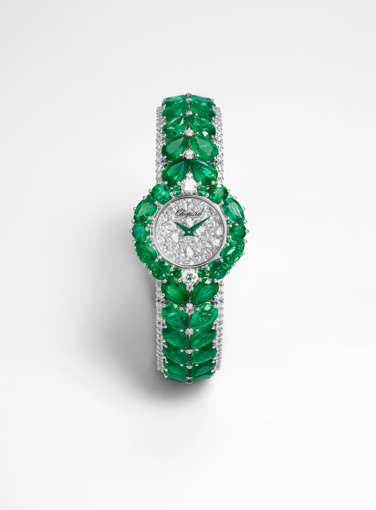 The first model in this year’s Red Carpet Collection is a sparkling emerald high jewelry watch named Esperanza. The watch is entirely crafted in ethical 18-carat white gold glowing with more than 41 carats of Zambian emeralds, a gemstone which has been coveted since Antiquity, spectacularly arranged in a mixture of pear-shaped and round-shaped cuts complemented by 6.38 carats of glittering diamonds. The house’s artisans required more than 515 hours to fashion this masterpiece of jewelry and haute horlogerie. The Esperanza watch is part of the spectacular Red Carpet Collection, the High Jewelry Collection that Caroline Scheufele designs each year as part of Chopard’s historic partnership with the Cannes Film Festival. Caroline Scheufele is Chopard’s co-president and artistic director.