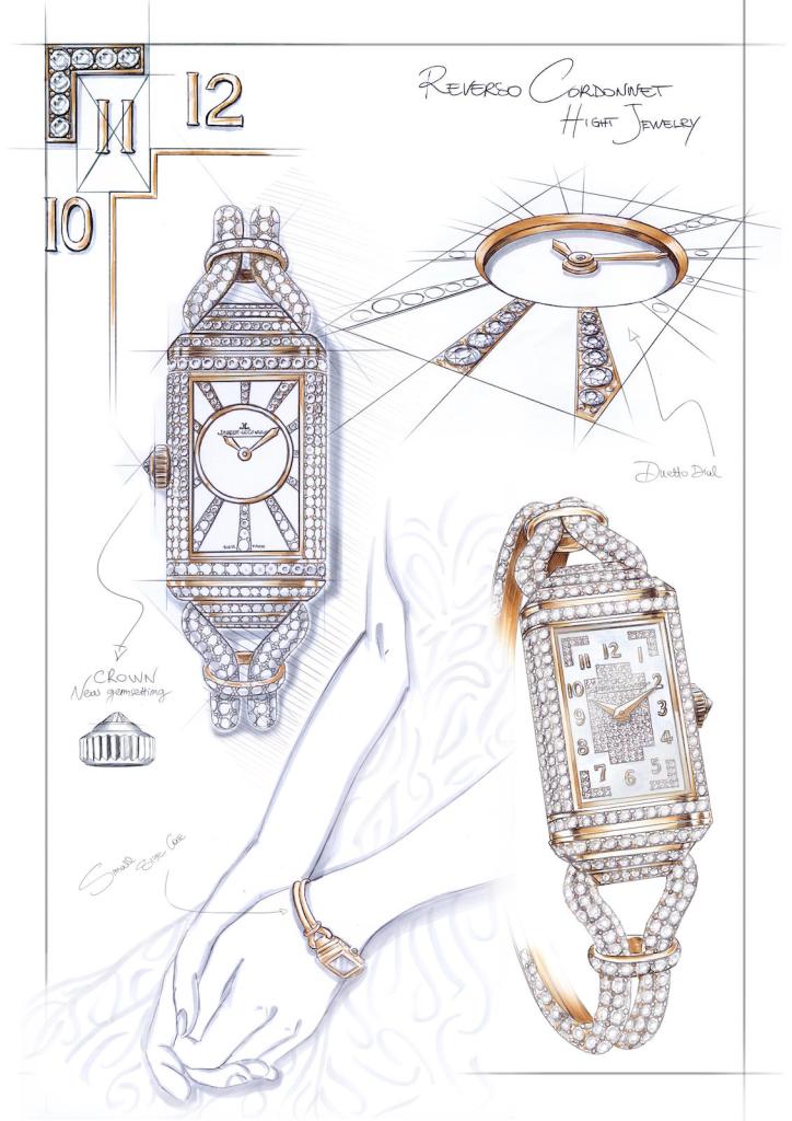 The double sided case of the Reverso is unique in watchmaking and offers a unique opportunity for the artisans of Jaeger-LeCoultre’s Atelier des Métiers Rares® (Rare Handcrafts tm workshop) to showcase their skills in the decorative arts. For the Reverso One Cordonnet Jewelry, the talents of the house’s gem setters and its mastery of watchmaking blend together to create an array of mesmerizing timepieces. In the 1930s, Jaeger-LeCoultre featured the cordonnet bracelet — cordonnet meaning fine braid — on several women’s watches. The simple black cord epitomized the refined elegance of the Art Deco period back in 1933.
