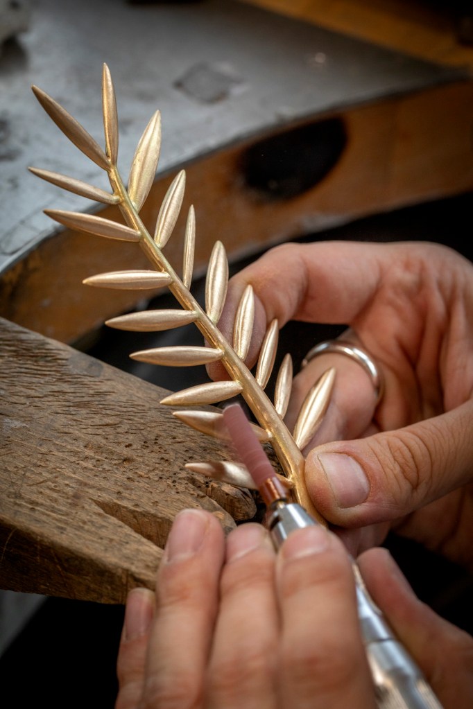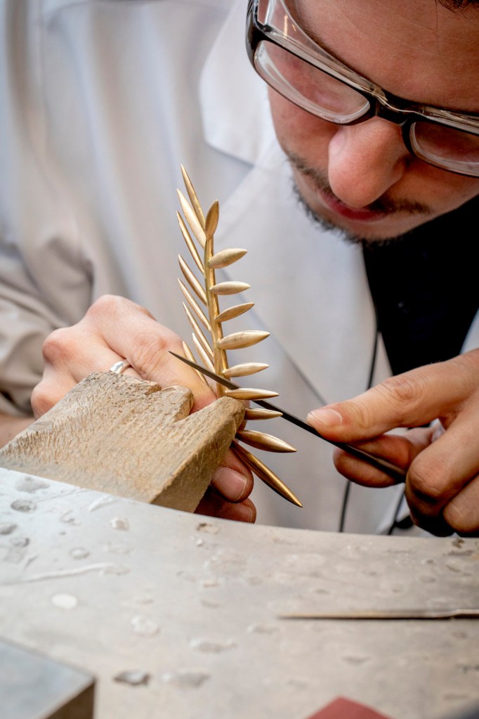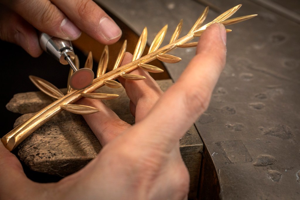 A craftsman of the house of Chopard fashions the Palme d’or awarded to the best film at the Cannnes Film Festival. Photo courtesy Chopard. Handout via The Gourmet Gazette