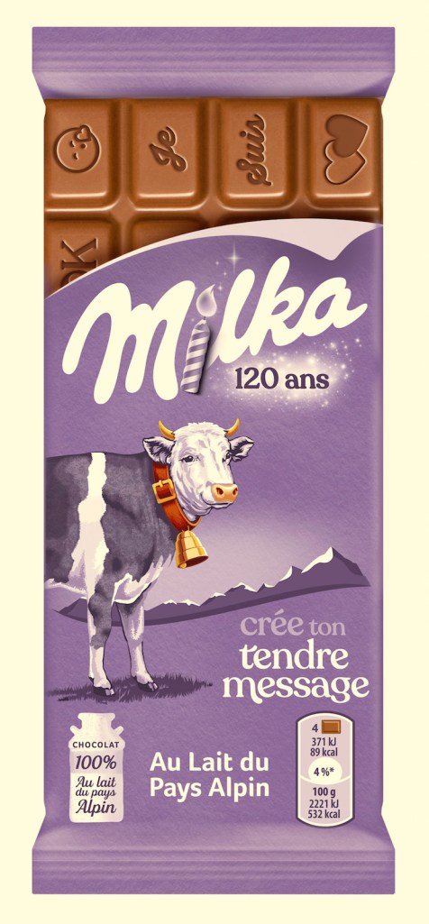 With its distinctive lilac packaging adorned with its Lila the cow mascot, Milka chocolate and cookie products are instantly recognizable on the shelves of food stores in the myriad countries around the world where they are found. From France to Bulgaria, from the United States to Argentina, the tender chocolate of Milka has been enjoyed by generations of sweet tooths and other tooths. The house is celebrating its 120th anniversary this year and the classic Milka chocolate bars are featuring tender messages with each chocolate square on the bar presenting words or drawings to create a message. Tenderness has been an integral part of the house’s advertising campaigns since the 1960s. Made from alpine milk, Milka has sponsored alpine skiing stars since 1995. Milka is owned by Mondelez International, one of the world’s largest snack companies, and whose motto is Snacking Made Right.