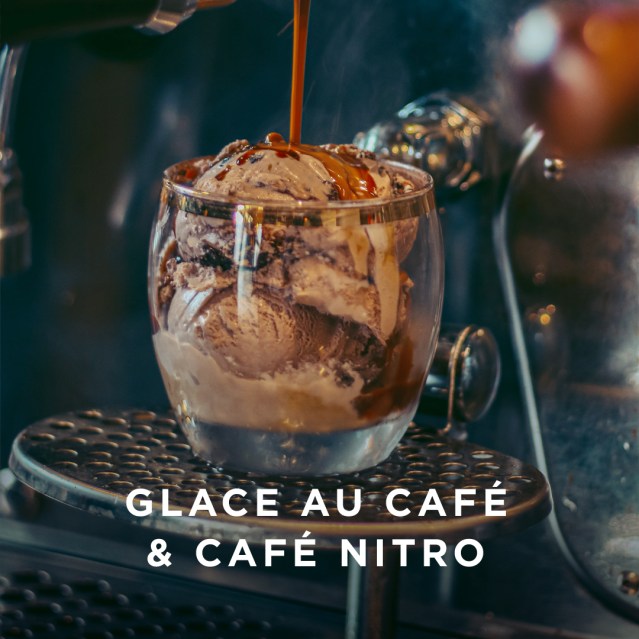 (Left) Coffee ice-cream with nitro coffee. (Right) Tasting coffees of the world. Photos Courtesy Caron handout via The Gourmet Gazette