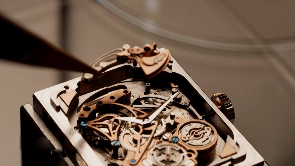 Embodying technical advances such as Jaeger-LeCoultre’s patented trebuchet hammers, silent regulator and a new generation of gongs, the Reverso Tribute Minute Repeater is powered by a revised version of Calibre 944 – a movement entirely conceived, designed and produced within the Manufacture. The new timepiece is distinguished by dials on both the front and reverse sides, bringing a fresh visual expression to the timeless Reverso design, as well as to the minute repeater mechanism itself. While the dials both display the same time, they are very different in character – one exuberant, the other more muted.