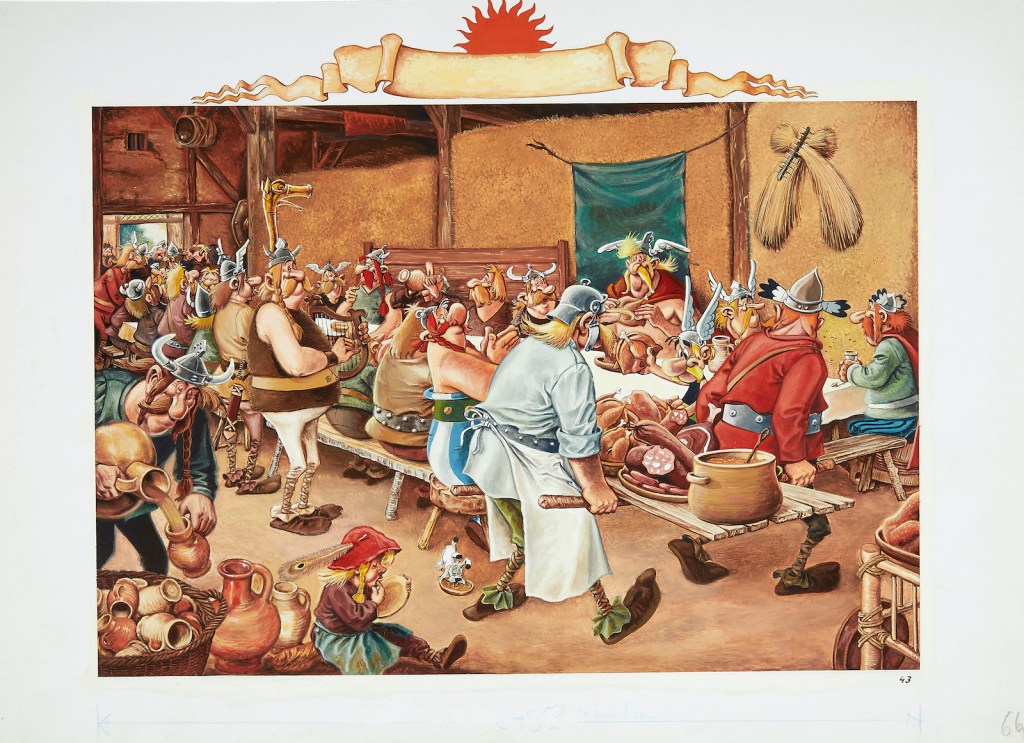A fascinating exhibition has been playing out in Paris taking a look at the long career of Uderzo including glimpses into his non-Asterix works at the Musée Maillol, entitled Uderzo, Like a Magic Potion. So if you can’t be in Paris right now or can’t make it to the show, The Gourmet Gazette brings the show to you. More than 300 plates, drawings, covers along with dozens of documents, the vast majority of which have never left Uderzo’s office, have been brought together for this instructive and fun show that was curated by his daughter, Sylvie Udzero with the exhibition coinciding with the first anniversary of his death on March 24th, 2020 at the age of 92.
