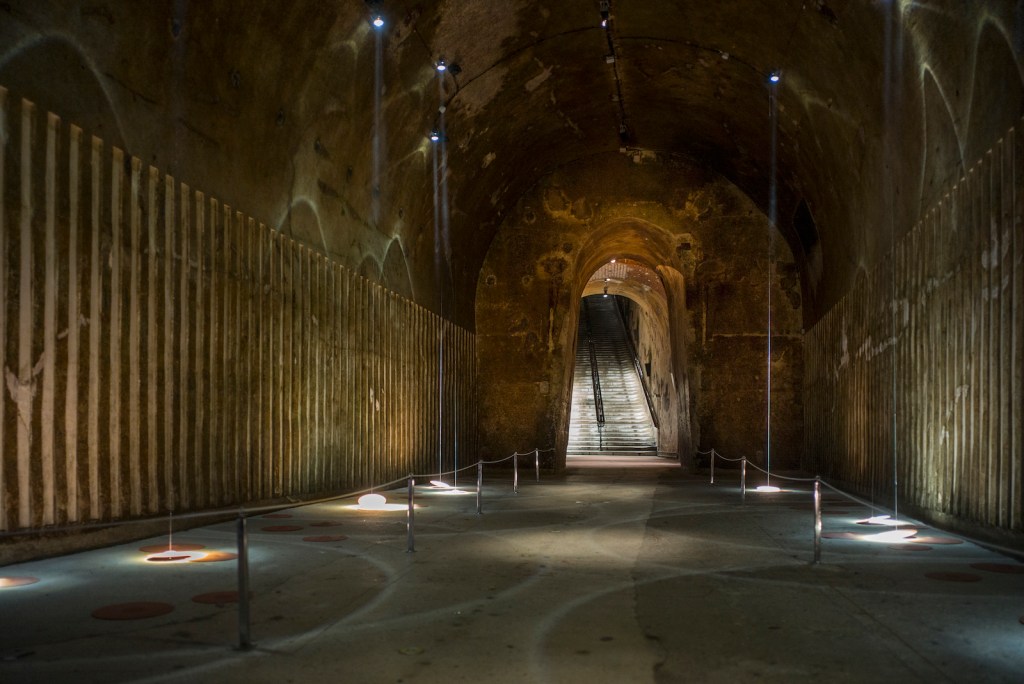 works of art, visible only once the monumental staircase of 116 steps has been descended, a staircase that comes to life with the light play work created by the Spanish artist Pablo Valbuena entitled Kinematope, 2016.