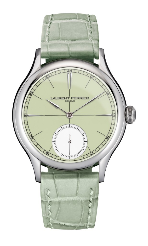 From the house of Laurent Ferrier, the Classic Origin Hope. This timepiece reveals a unique matt green aquamarine dial housed in a stainless steel case. Photo courtesy Only Watch. Handout via The Gourmet Gazette