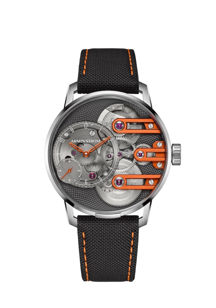 From the house of Louis Moinet, the Memoris Spirit Only Watch. This timepiece reveals a fully visible chronograph mechanism housed in a 40.7mm titanium case framing contemporary hands, topped by a domed crystal and teamed with an integrated alligator strap. Photo courtesy Only Watch. Handout via The Gourmet Gazette