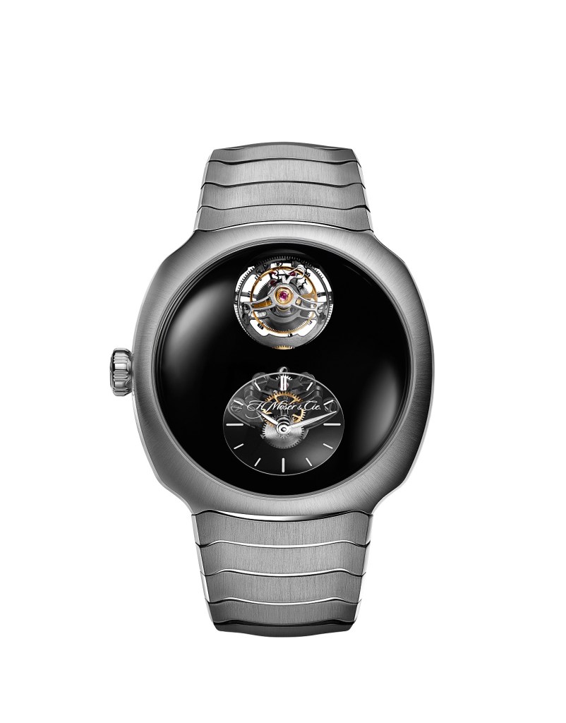 From the house of H.Moser & Cie, the Streamliner Cylindrical Tourbillon Only Watch. This A-shaped watch is outfitted with a three-dimensional movement and a beautiful flying tourbillon. Photo courtesy Only Watch. Handout via The Gourmet Gazette