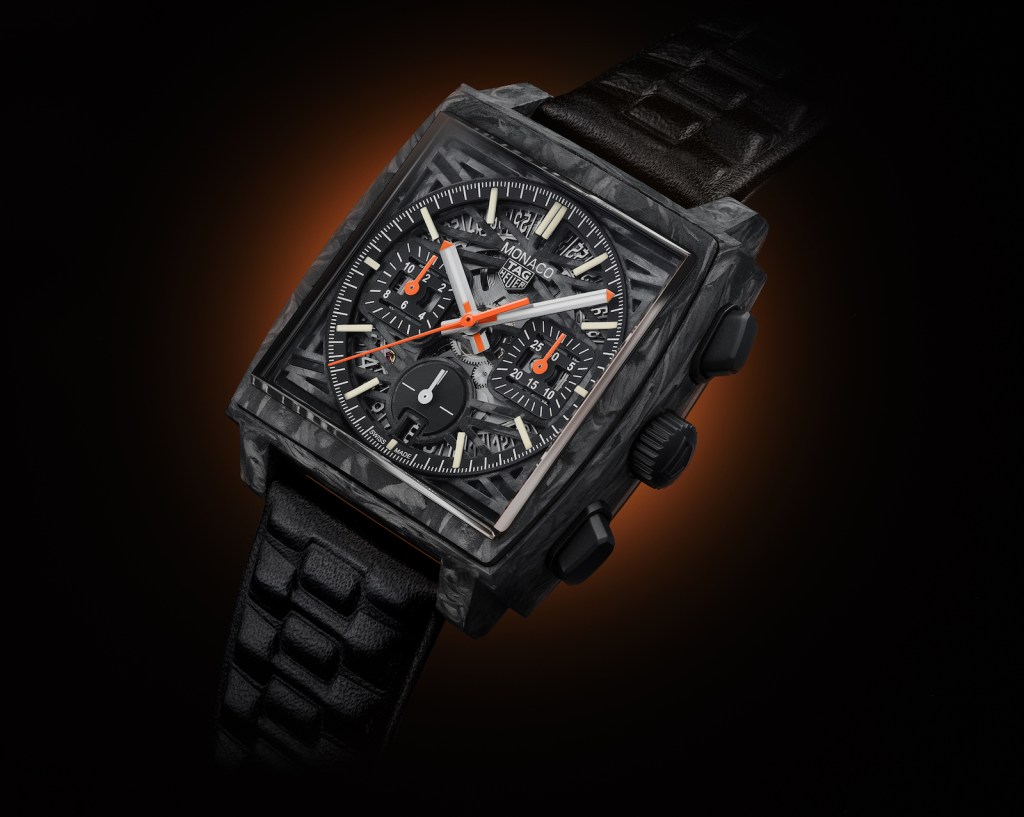 From the house of Tag Heuer, the Only Watch Carbon Monaco. This timepiece is a new look on the the iconic ultra-rare Monaco “Dark Lord” in carbon, combining visionary avant-garde design and cutting-edge materials with exceptional traditional handcrafted savoir-faire. Photo courtesy Only Watch. Handout via The Gourmet Gazette