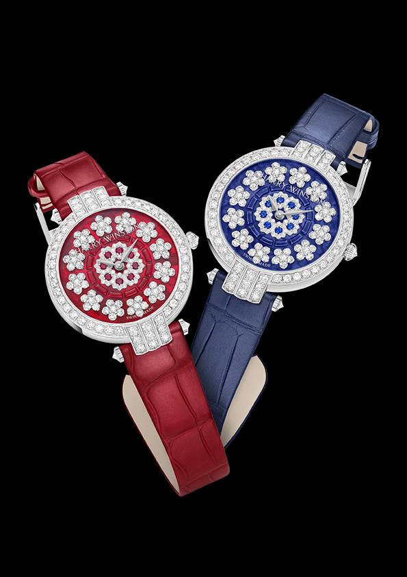 The elegant 36mm Premier case in 18-karat white gold is set with 57 brilliant cut diamonds and the timepiece is powered by a rose gold skeletonized rotor mechanical, automatic movement and the watch has a power reserve of 72 hours. The timepieces have been brought out in a limited edition of 30 pieces for each model. Outfitted with red or blue alligator straps to match the dials, they are secured to the wrist with a white gold ardillon buckle set with 17 brilliant-cut diamonds.