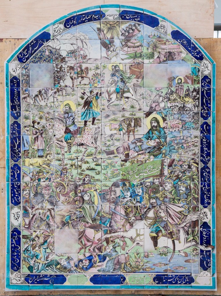 Painted tile panel depicting the Battle of Keerbala in ceramic, dating from the 19th century, Iran, on display at the Marseille exhibition. Coll. Musée des arts décoratifs ©Patrick Agereau. Handout via The Gourmet Gazette