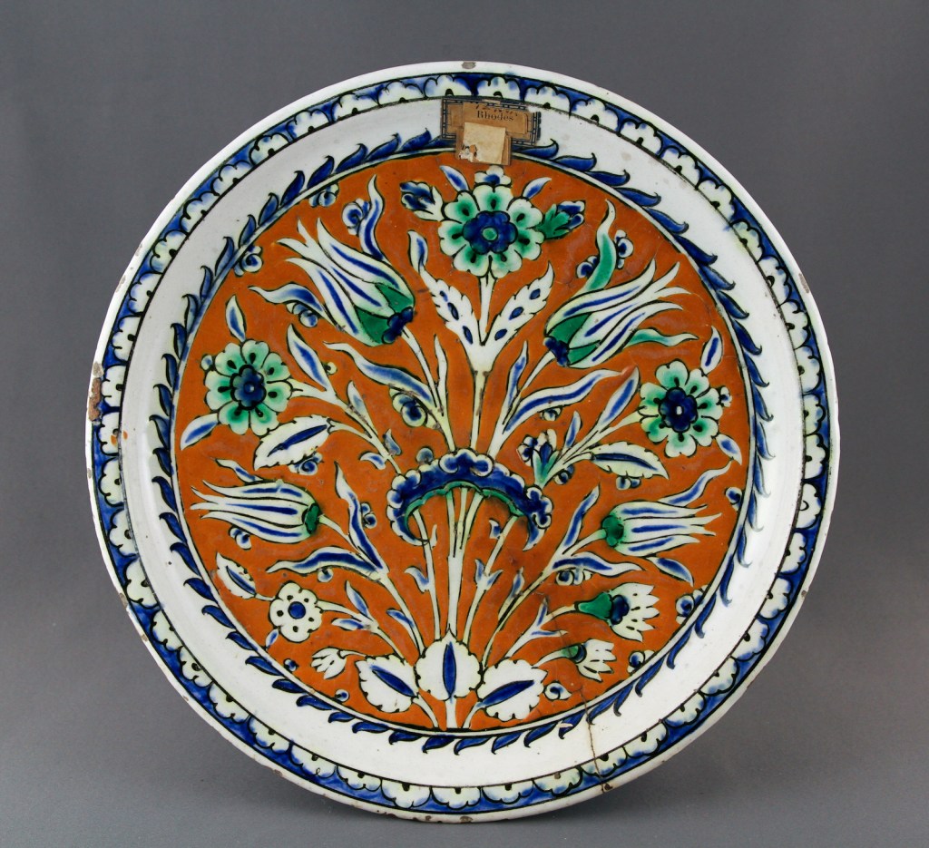Iznik plate circa end of 16th/beginning of 17th century in ceramic on display at the exhibition in Narboone. Narbonne, musée d’art et d’histoire
