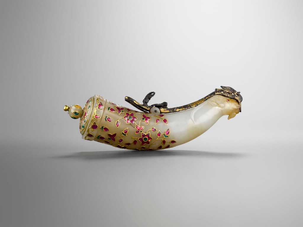 A powder pouch in jade from 17th century India on display at the exhibition in Rouen. ©Musée du Louvre, Dist. RMN-Grand Palais / Hughes Dubois. Handout via The Gourmet Gazette