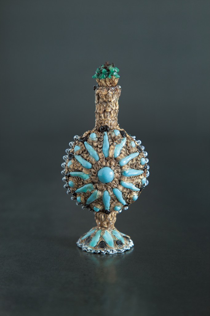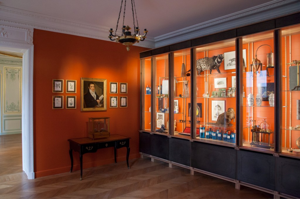 Paris, France — A small perfume bottle in the shape of a bird in porcelain, gold, enamel and agate fashioned in England in the 18th century by the French jeweler Charles Gouyn, a whimsical perfume bottle in the shape of a champagne bottle and myriad objects from Antiquity related to perfume. These are among the rare and exceptional objects on display at the Musée du Parfum de Fragonard. It is one of the great Parisian places bringing together myriad French arts and crafts and showcasing the history of perfume. The Grasse-based perfume maker Fragonard re-opened the doors of its perfume museum in Paris last March 14th to reveal once again one of the finest and largest collections of old and ancient perfume bottles and containers in the world. The museum is nestled into a 19th century private mansion, replete with wall moldings, parquet floors and chandeliers, just footsteps away from the Garnier Opera House and the visitor is plunged into Paris of the Second Empire in the finely appointed rooms on the first floor of the home where the Costa family, the owners of Fragonard, share their fabulous collection with the world at large.