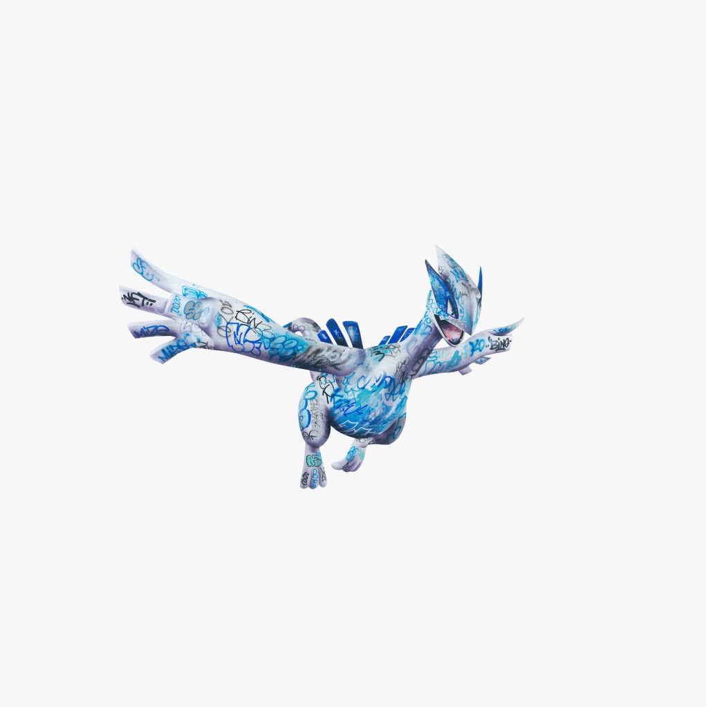 The world renowned OneMizer joined forces with SECR3T, a Paris and Lisbon-based marketplace specialized in NFTs, to present The Shining Vandalized Lugia Experience, starring a flying dragon-like creature in fun blues and pinks. On hand as well were the artist’s renditions of the Pokemon character and his series 90s Vibes which pays tribute to those beloved Gameboys.