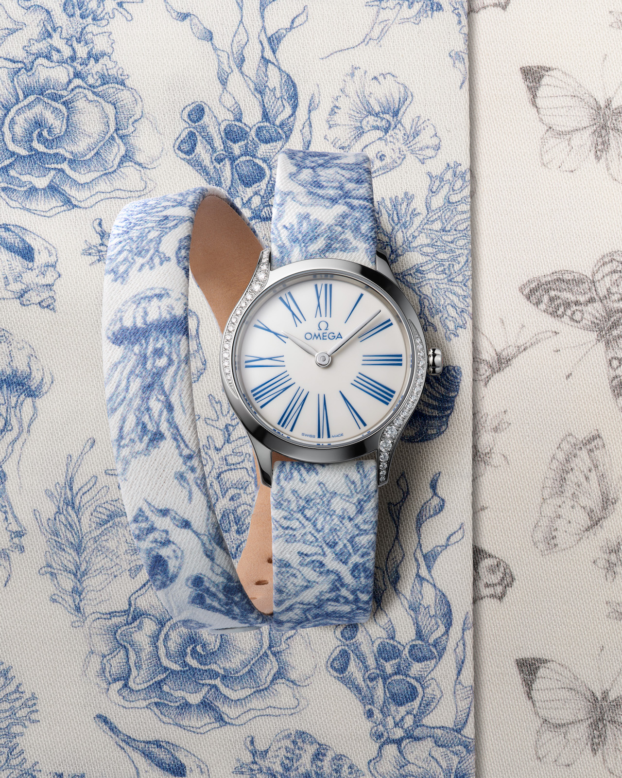 The Mini Trésor with a double tour Toile de Jouy strap offering a unique look to watch wearing. Photos courtesy Omega. Handout via The Gourmet Gazette