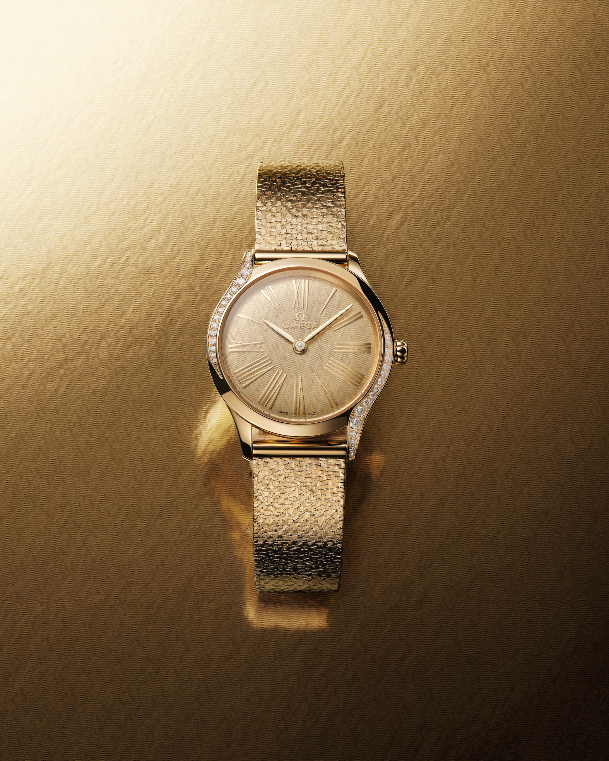 In 2022, Omega is releasing smaller 26mm models and introducing beautiful new straps with patterns that draw their inspiration from a traditional French fabric design, the famous Toile de Jouy. There are also two sparkling editions in 18K Moonshine Gold. The first model is for Moonshine Gold lovers for the entire timepiece —case, bracelet, hands, hour markers and the silky dial — is made in Omega’s unique alloy. Another version is available in an off-white Grand Feu enamel dial with blackened Roman numerals.