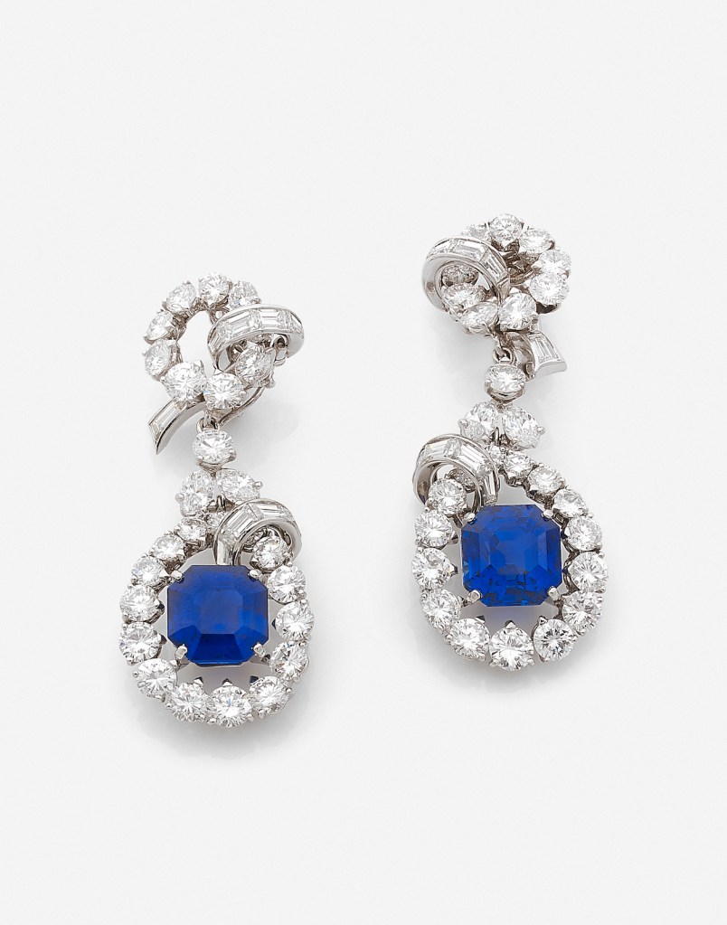 Earrings in gold, platinum, sapphires, topazes and diamonds were sold to a European collector for US$ 333,189. Photo courtesy Artcurial. Handout via The Gourmet Gazette