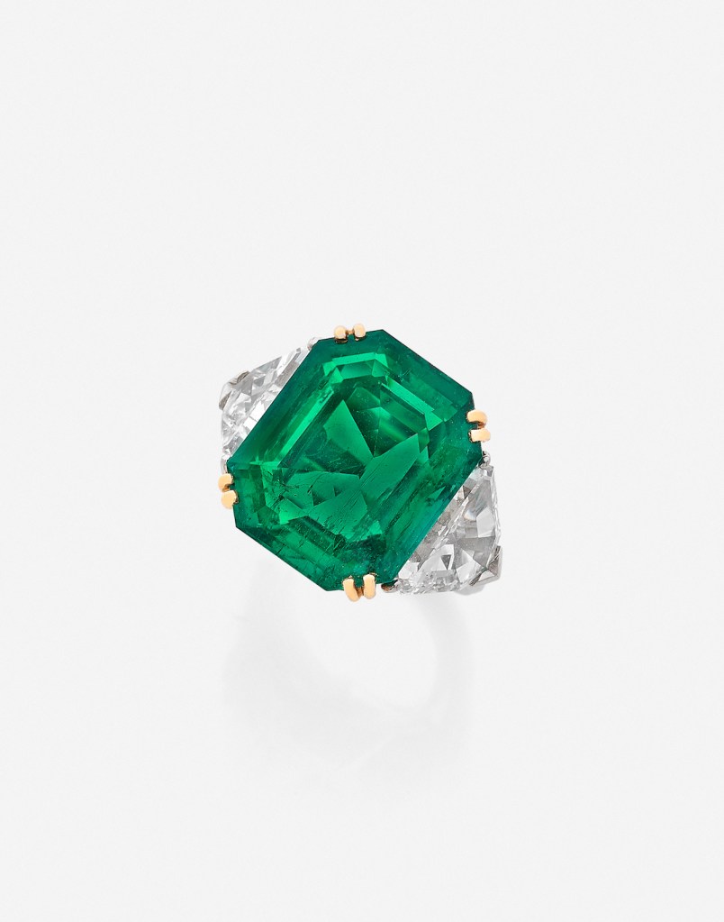 Platinum, gold and emerald ring from the house of Guillemin & Soulaine was sold to an American collector for US$ 345,582. Photo courtesy Artcurial. Handout via The Gourmet Gazette