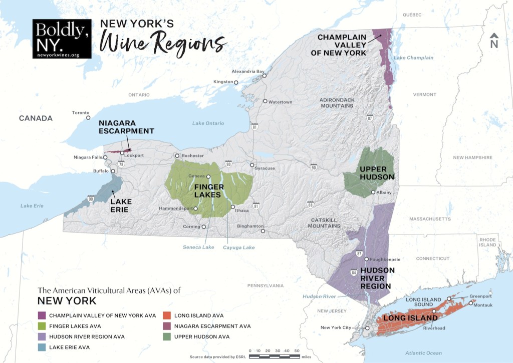 New York is the most geographically diverse wine-making state in America ranging from the varietals grown in the sea air and sandy soil of Long Island to the rich soils of the Finger Lakes where the famous ice wines, Rieslings, and some excellent sparklings are found. There are also the delicate wines of the Hudson Valley whose wineries use Native American, French-American and European grape varieties. Long island wines are relative newcomers to the New York wine producing scene with the first wines being brought out in the late 1970s.