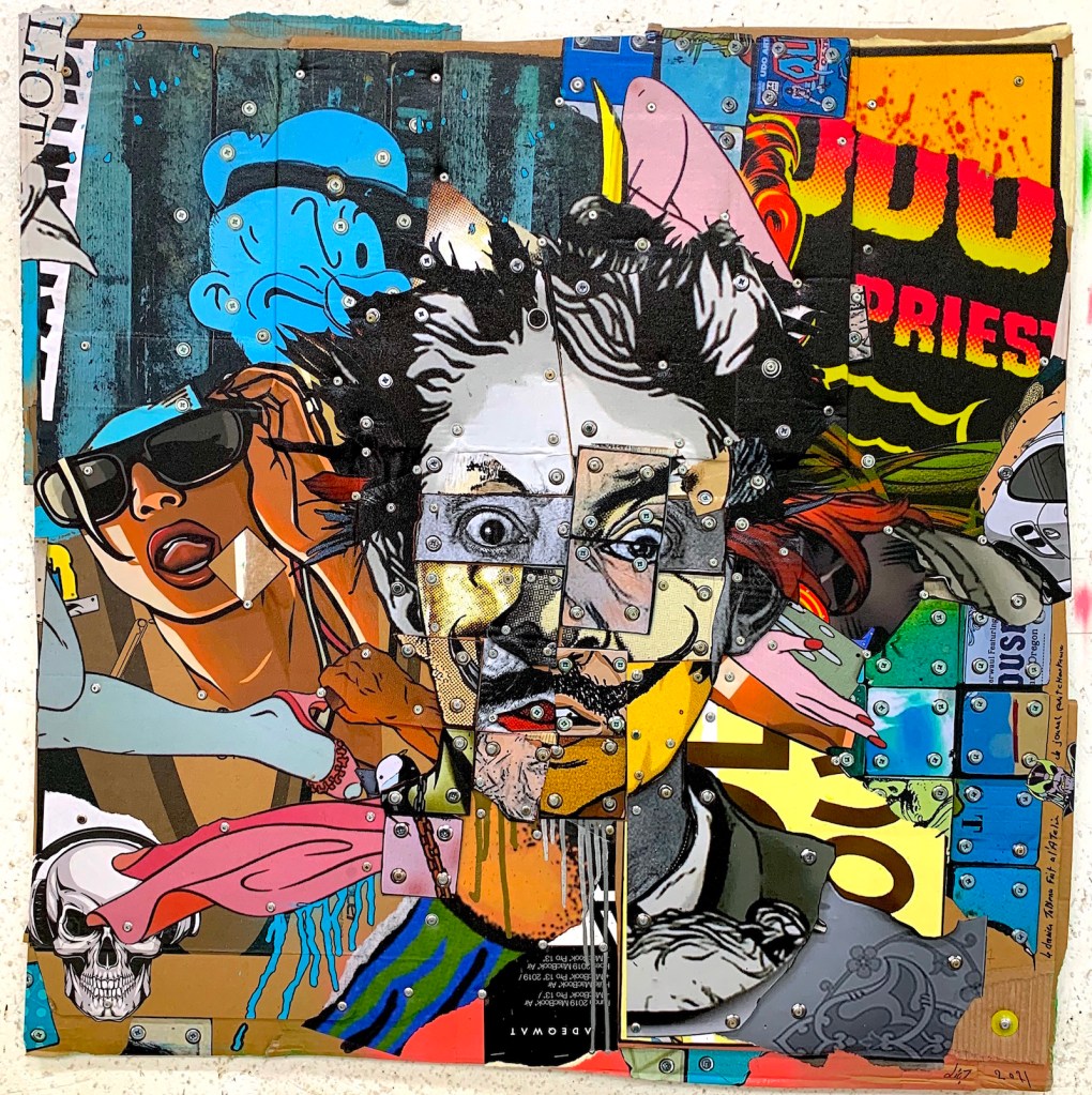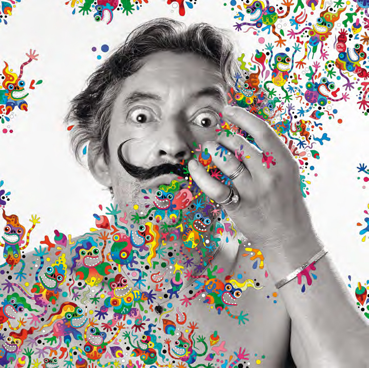 Twenty-four artists, sculptors, painters, designers and a starred chef transfigured, diverted, transformed and interpreted these celebrated photographs in their own way, a re-creativity process that has been in the works for the past decade. The artist Peter Klasen was the first on board to dialogue with these portraits taking on Gainsbourg as Dali by bringing the symbolism of the Angelus of the 19th century French artist Jean-Françcois Millet. Jacques Villeglé, Miss Tic., Orlan and Eric Liot are among other artists who participated in the ambitious project.