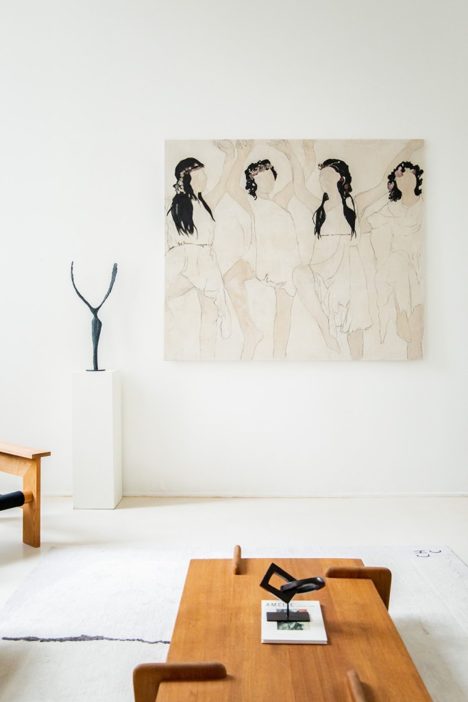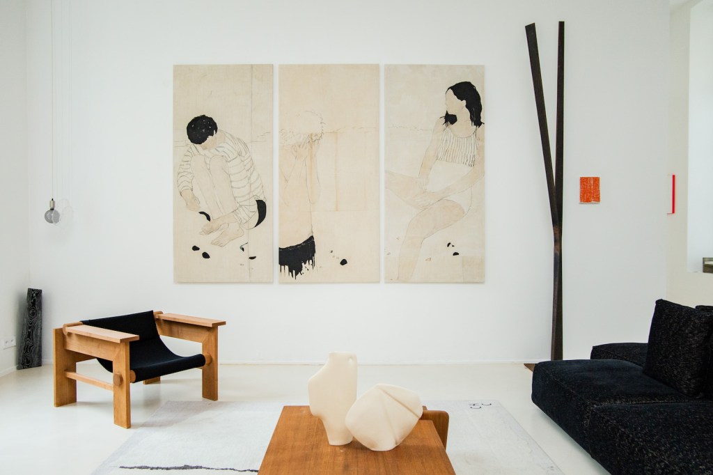 Meanwhile inside a series of rooms unfold into one another from the entrance to the collection lounge, a second living room, there is even a billiard room, followed by the « Happening Room », which hosts in situ installation made by the artists of the gallery each semester. There is a kitchen made with raw natural materials like granite and dark grey cement and then the visitor can discover the winter garden or sculpture garden which houses the dining room and looks out onto a beautiful garden. Amélie du Chalard also works with collectors and budding collectors and offers a tailor-made service that includes a digital simulation of artworks in their spaces, to framing, delivery and hanging.