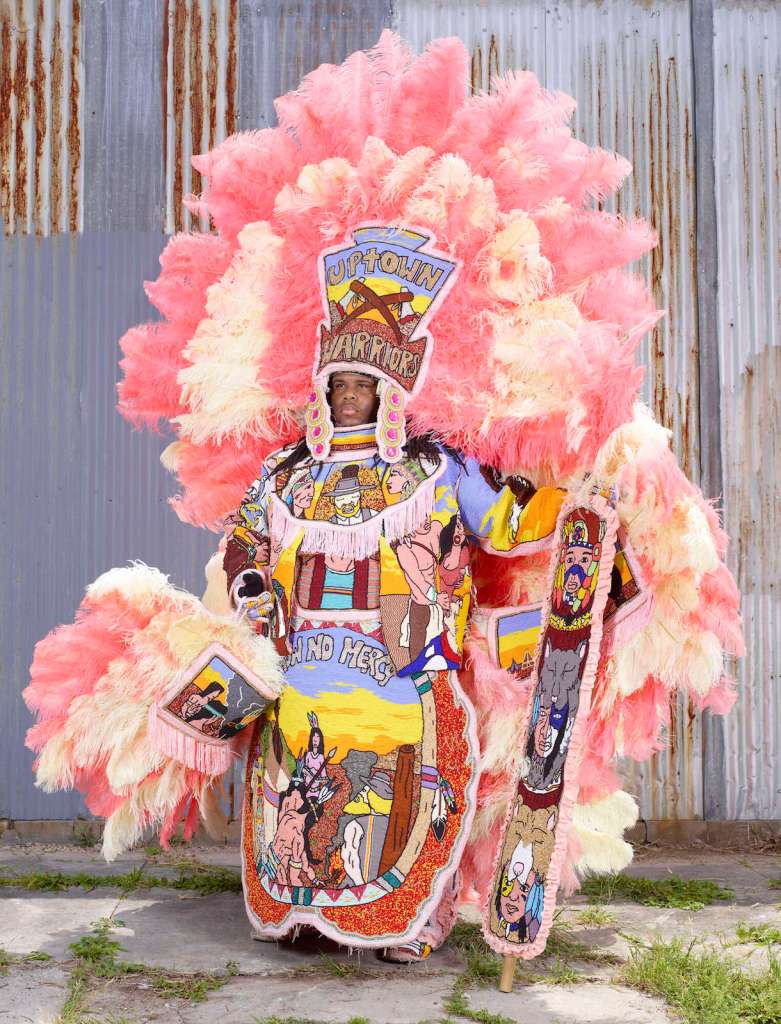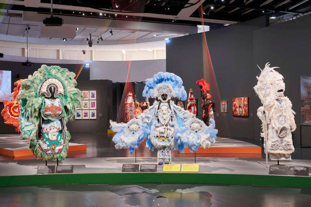 The exhibition is articulated in six parts and is played out both geographically from the Old World to the New World and chronologically from the first European presence in Louisiana to the present day. It is a collaborative show created with representatives of the Black Indian communities. The brutal European colonization of the region combined with forced labor and oppression brought together the Native Americans with the newly arrived Africans. The two communities developed lasting ties. They often lived together on the reservations, they would intermarry and have children together. Throughout the 19th century, Native American lore, lifestyles, beliefs and attire would be an inspiration for the first Black Indians, the African Americans. The two communities would gather together on Sundays — when farm work was forbidden by the Catholic Church —on what was then called Place des Nègres and has since been renamed Congo Square. Here cultural, religious and artistic practices were renewed, generated and regenerated including the Creole language and Voodoo. The term Black Indian refers to the African-American communities of New Orleans.