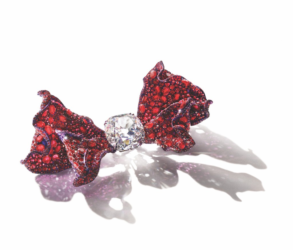 Paris, France -As tradition has it, the 12 days of Christmas begin on December 25th and follow onto one another until the 6th of January when the Wise Men followed a star into Bethlehem. Gifts and sustenance were traditionally given over those 12 days and today we bring you a high jewelry piece from the house of Cindy Chao the Art Jewel, a fruity pink champagne from the house of Chassenay d’Arce and the Yule log Christmas cake, known as the bûche de Noël in French, that was served at the Molitor hotel in Paris during the holiday season. Shimmering ribbons, flowers and butterflies are Cindy Chao’s signature motifs and this stunning ribbon brooch pictured above was among them. The 2018 Black Label Masterpiece XXI enjoys a centerpiece of a 76.91 carat old mine brilliant cut diamond surrounded by resonating diamond-cut rubies totaling 117.12 carats set in a pavé.