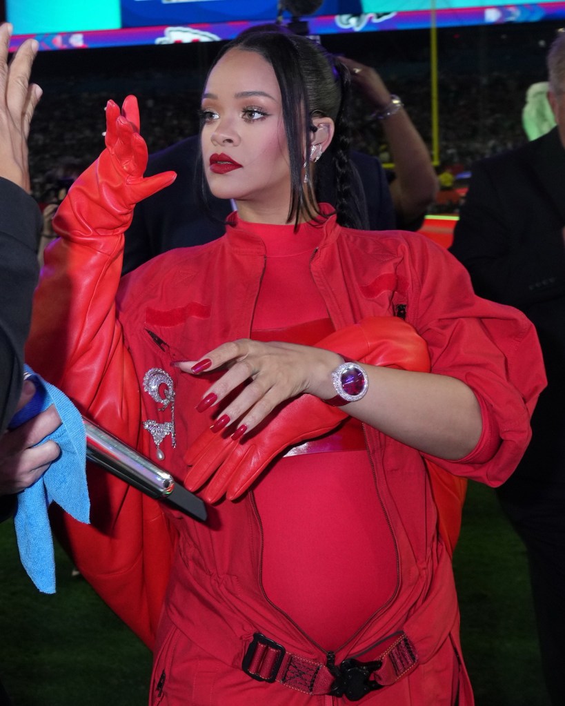 When Rihanna, the superstar singer, revealed she was pregnant during the halftime show at this year’s Super Bowl last February 12th, she also revealed a stunning red watch on her left wrist. The Brilliant Northern Lights timepiece from the house of Jacob & Co glowed in red and bright diamonds and matched her red overalls. The beautiful watch with its red crystal and red alligator strap showcases 323 white diamonds set onto its 44mm case. Outfitted with a red crystal and red alligator strap, the Brilliant Northern Lights is a stainless steel high jewelry skeleton timepiece set with 11.26k of pavé diamonds. It is covered by a rarity: a full red crystal. The crystal is the glass material that covers the face of the watch, however the glass is usually colorless.