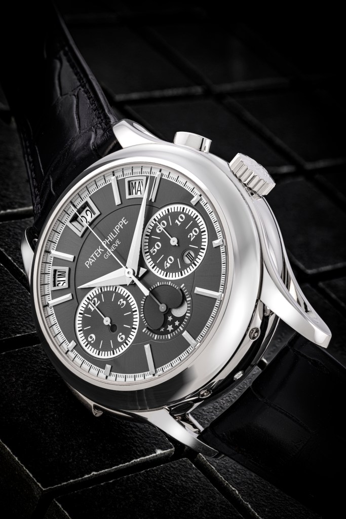 Patek Philippe Grande Complication. Patek Philippe’s first grande complication wristwatch with chronograph, perpetual calendar and minute repeater – plus a moon phase – in exquisite platinum is the definition of a grail watch. The instantaneous change of day, date and month in leap years alone testifies to unparalleled watchmaking prowess. It is estimated at $US 700,000 to $US 1.2 million (HK$5,500,000-9,500,000). Photos courtesy Christie’s. Handout via The Gourmet Gazette