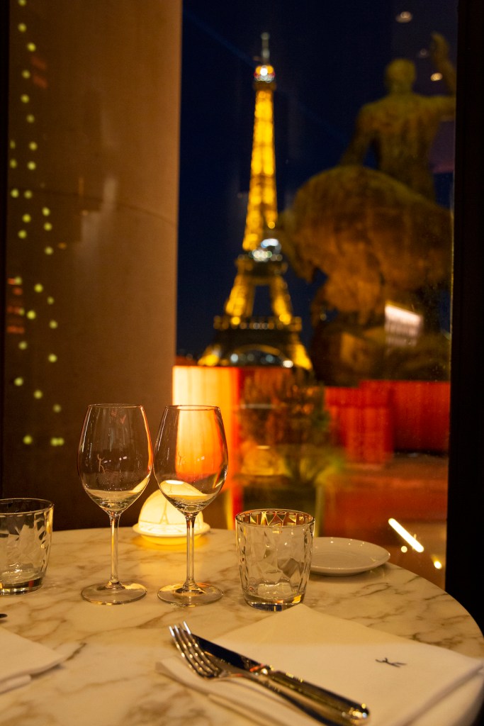 Paris, France — It’s back and even better than before, as if that could be possible. This has always been one of The Gourmet Gazette’s favorite spots in Paris for wining and dining, even way back when, when it was called the Totem. Tucked away in the Palais de Chaillot with the Musée de l’Homme, the national museum devoted to humankind and its anthropology and culture, it definitively debunks the myth of « you are paying for the view. » This restaurant (lunch, pre-dinner, dinner, cocktails) has one of the finest views in Paris directly facing the Eiffel Tower from the Trocadero esplanade. But it has something more, great food, welcoming service, a fine wine list and good value. And given that this year is the 100th anniversary of the death of Gustave Eiffel, it also offers a great historical pilgrimage. One of the trio of owners, Coco Coupérie Eiffel, is a great granddaughter of the great civil engineer known the world over for his eponymous tower. She works alongside partners Christophe Bonnat and Jean Moueix. The hallmarks of the house: excellence, the French art of living and keen hospitality.