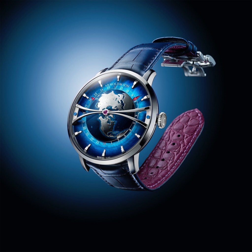 All agreed, Watches & Wonders in Geneva revealed a wealth of wonders during its 2023 odyssey. Among them an intensely beautiful timepiece in precious materials letting the wearer look at the planet earth throughout the day or night. The Globetrotter Platinum watch from Arnold & Son features a central globe depicting the northern hemisphere, spanned by an immense bridge in 18-carat gold and for the first time ever, its 45 mm diameter case is made with 950 platinum, the highest grade of platinum used in jewelry-making and one of the most prestigious and noblest of metals. On the globe, America, Eurasia and Africa above the equator are represented with a wealth of detail. This is high craftsmanship at its finest.